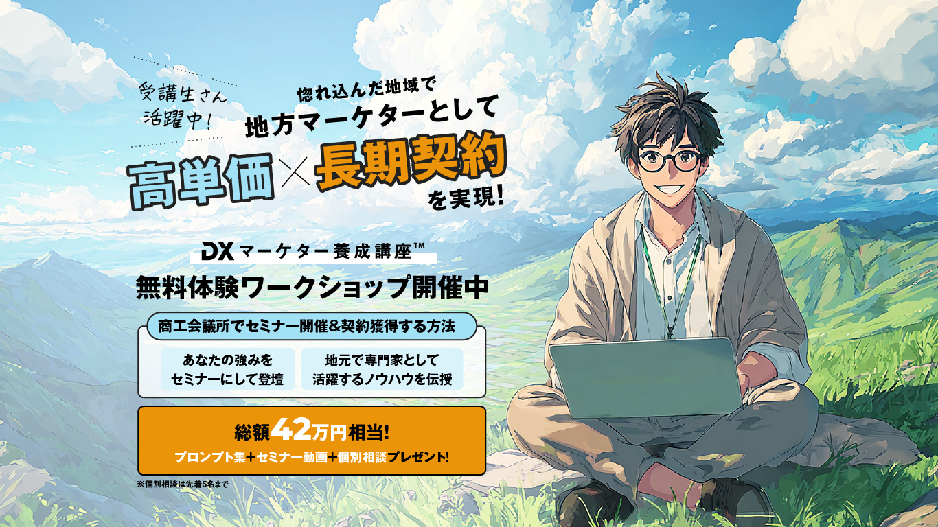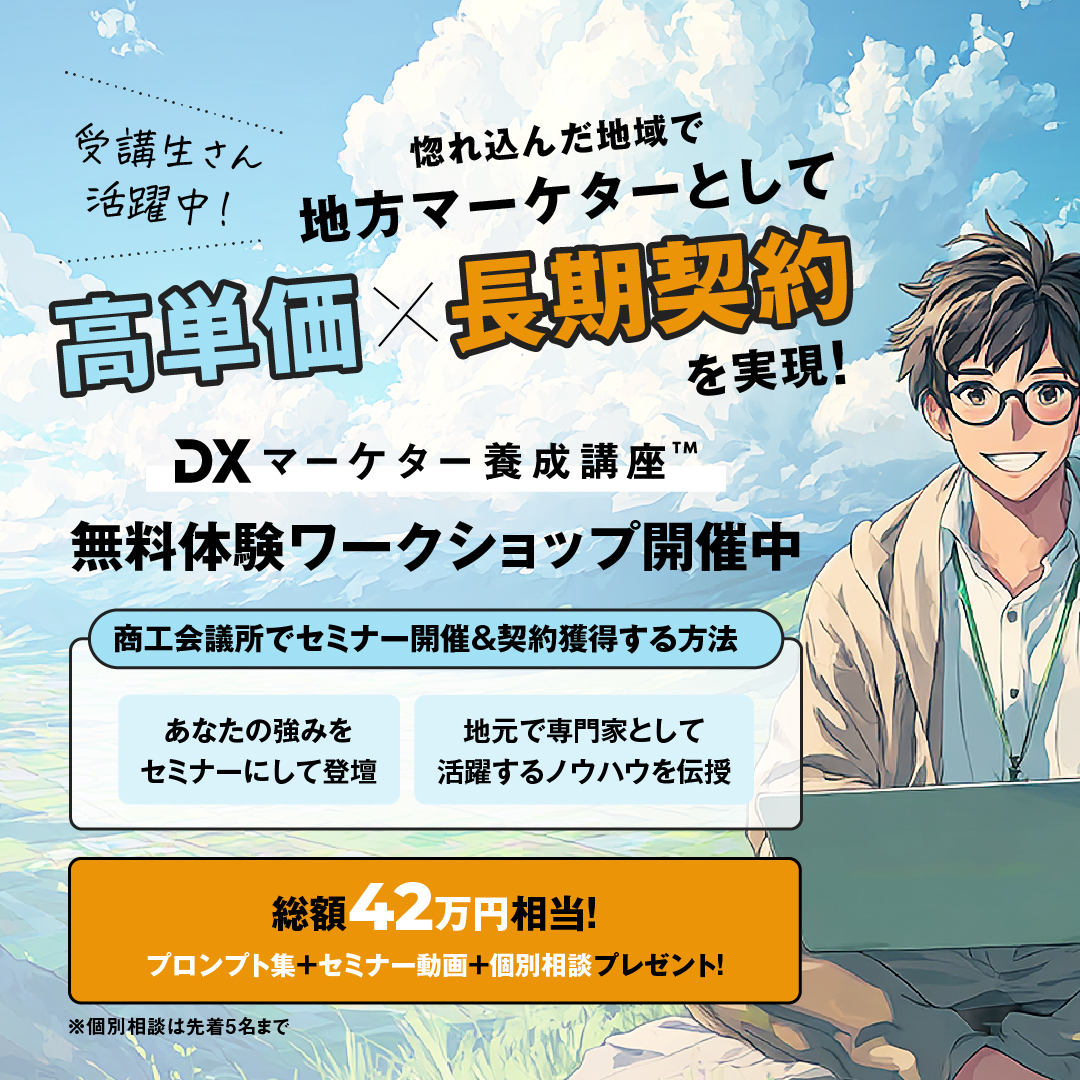| 参加特典 | 🎁 参加者全員:「DXマーケター必須プロンプト集」 🎁 先着5名様:講師への直接質問できる個別相談(30分) |